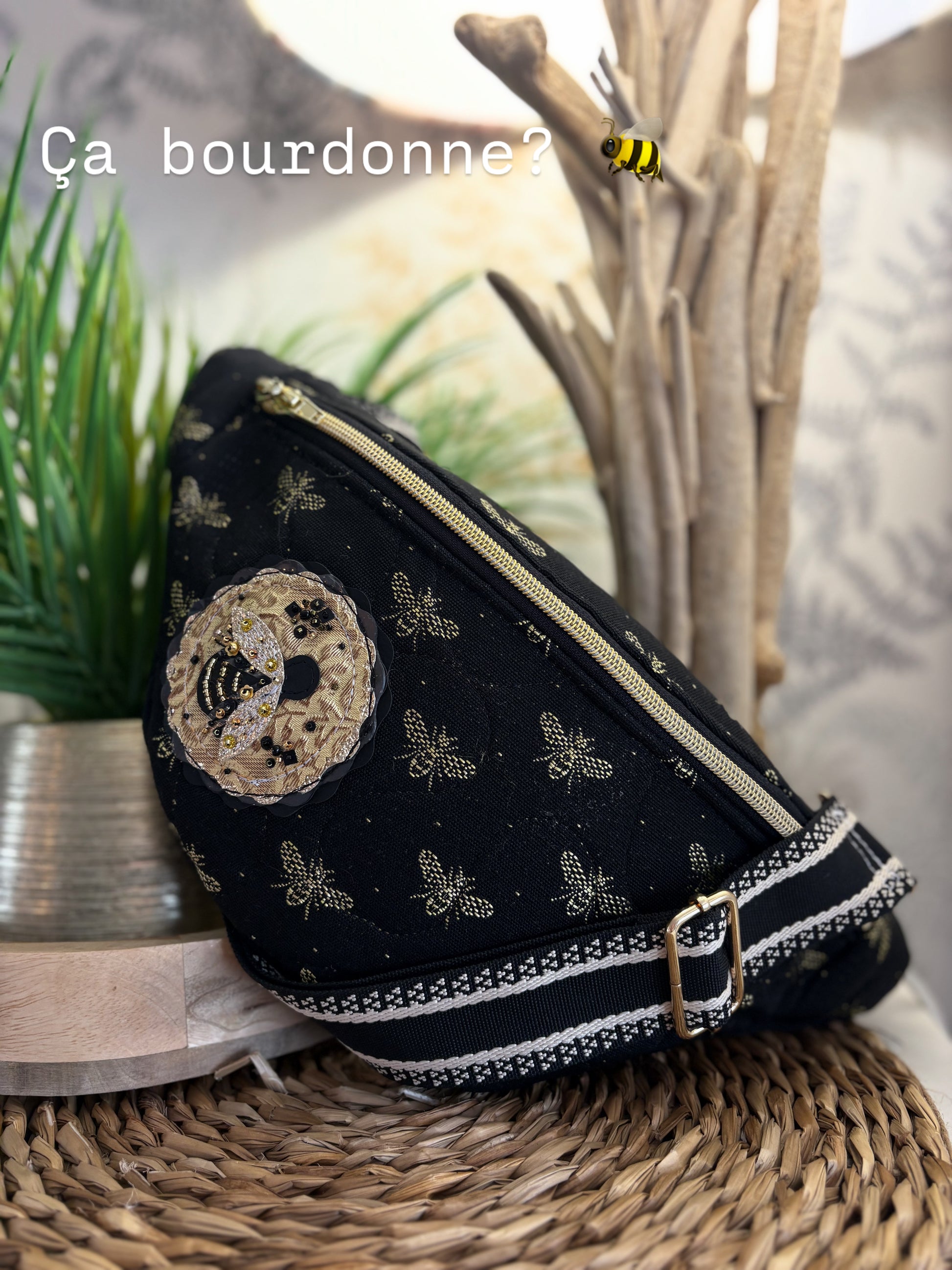 Banane abeille perlée à la main. Pièce unique. Trois poches intérieur. Élégante et originale.