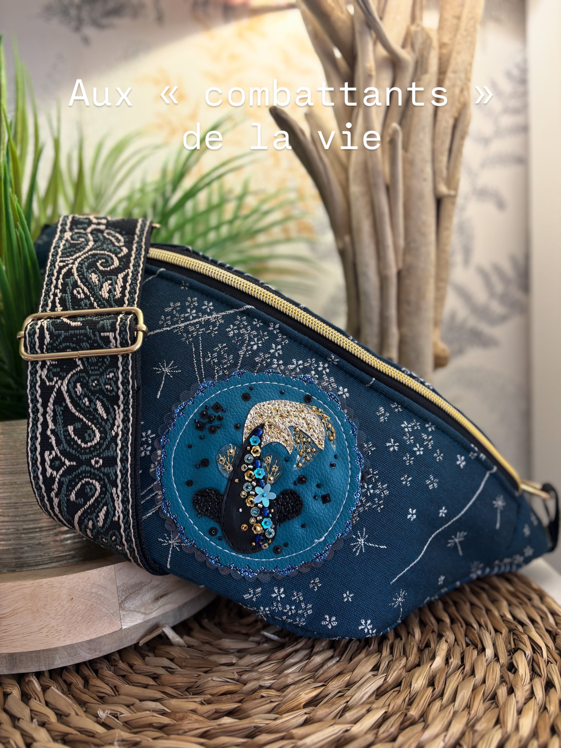 Banane combattant. Pièce unique. Découpée et perlée à la main. 3 poches intérieur