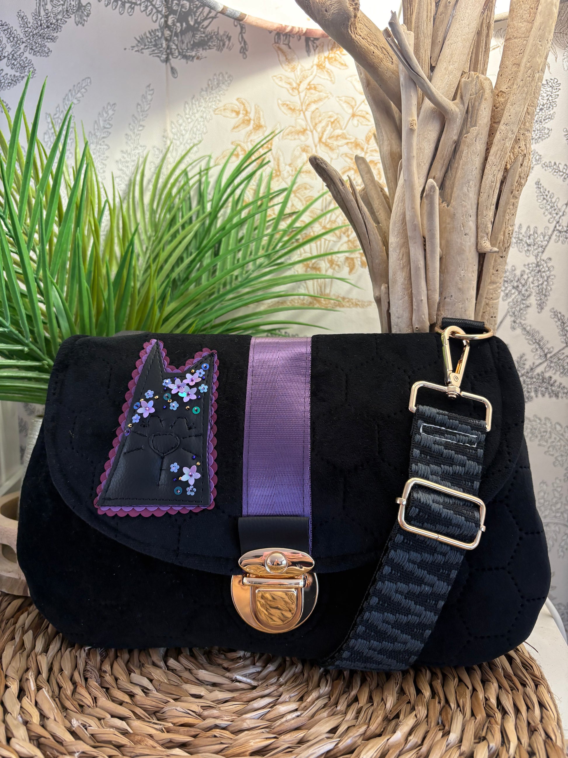 Sac à main chat perlé à la main. Pièce unique. 3 poches intérieur.