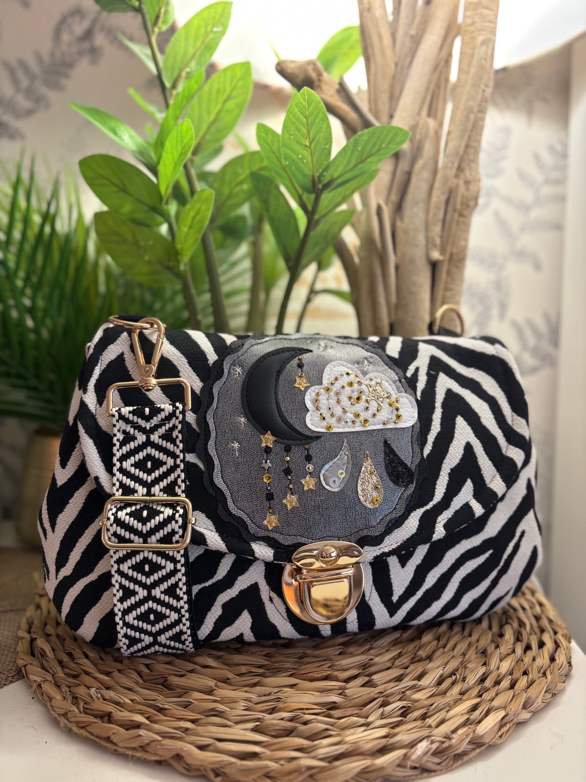 Sac à main perlé à la main, trois poches intérieur