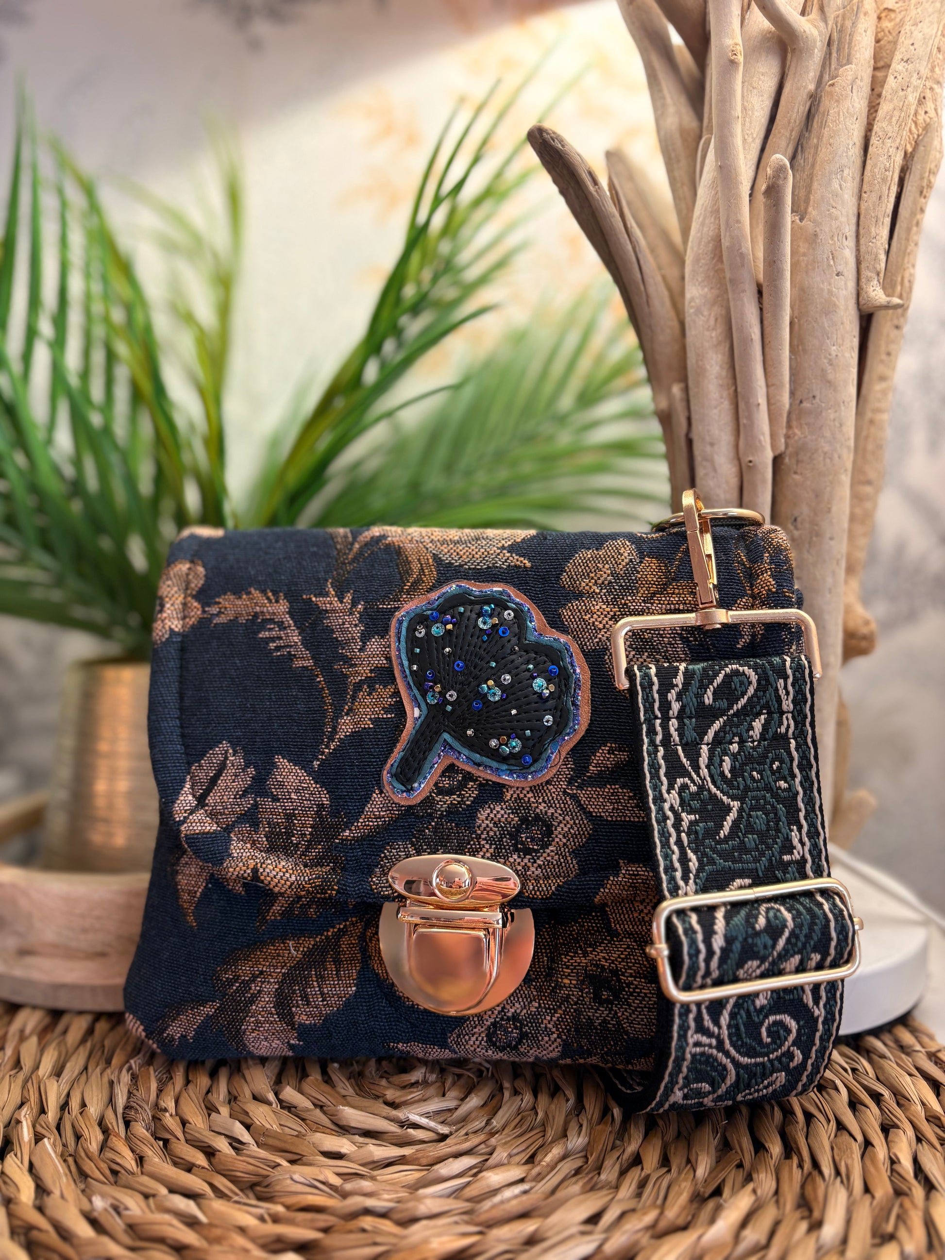 Sac à main format mini: pour l essentiel: téléphone, papiers, clés, mouchoirs. Gingko perlé délicatement à la main