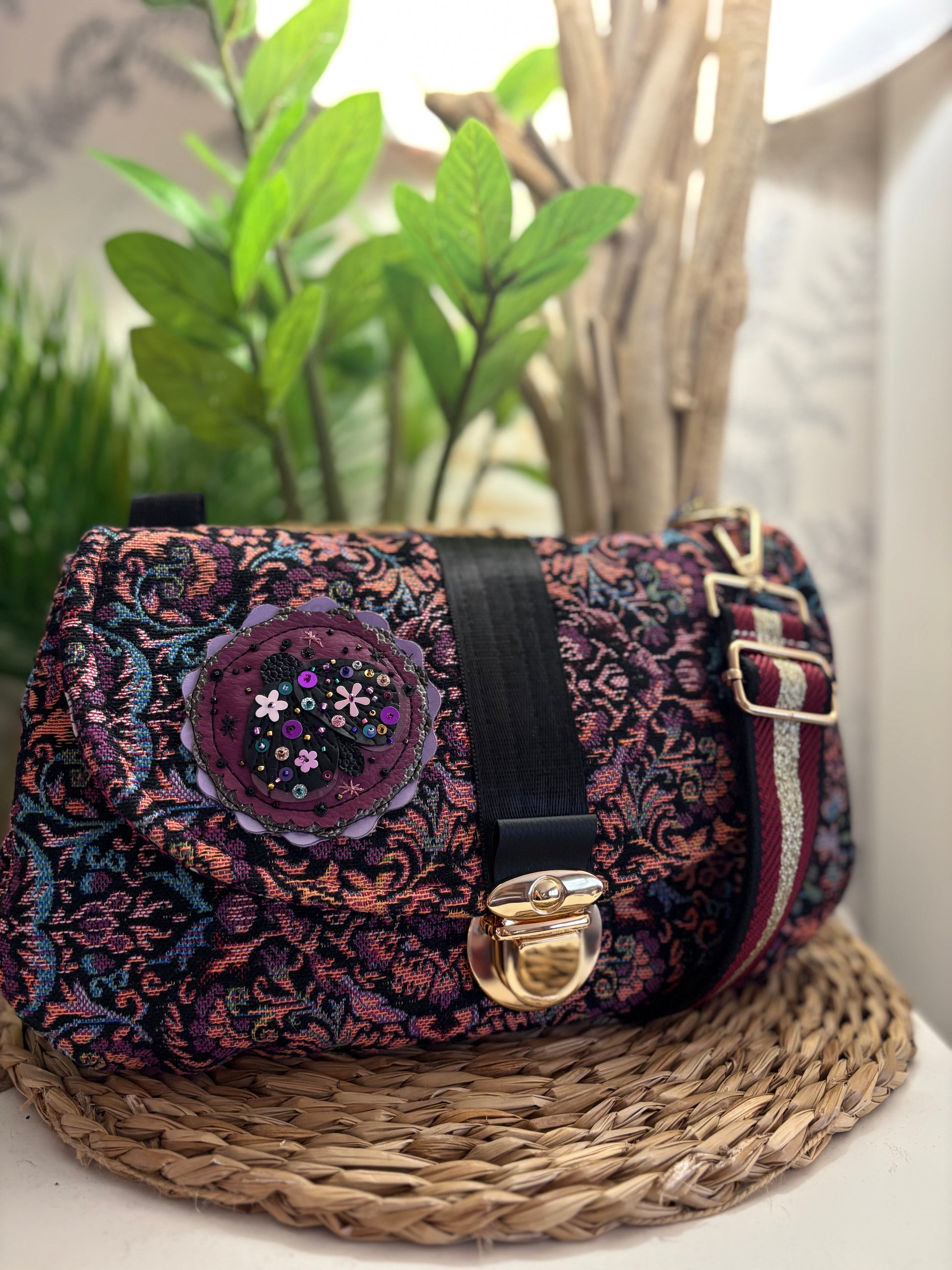 Sac à main papillon de nuit perlé . Trois poches intérieur