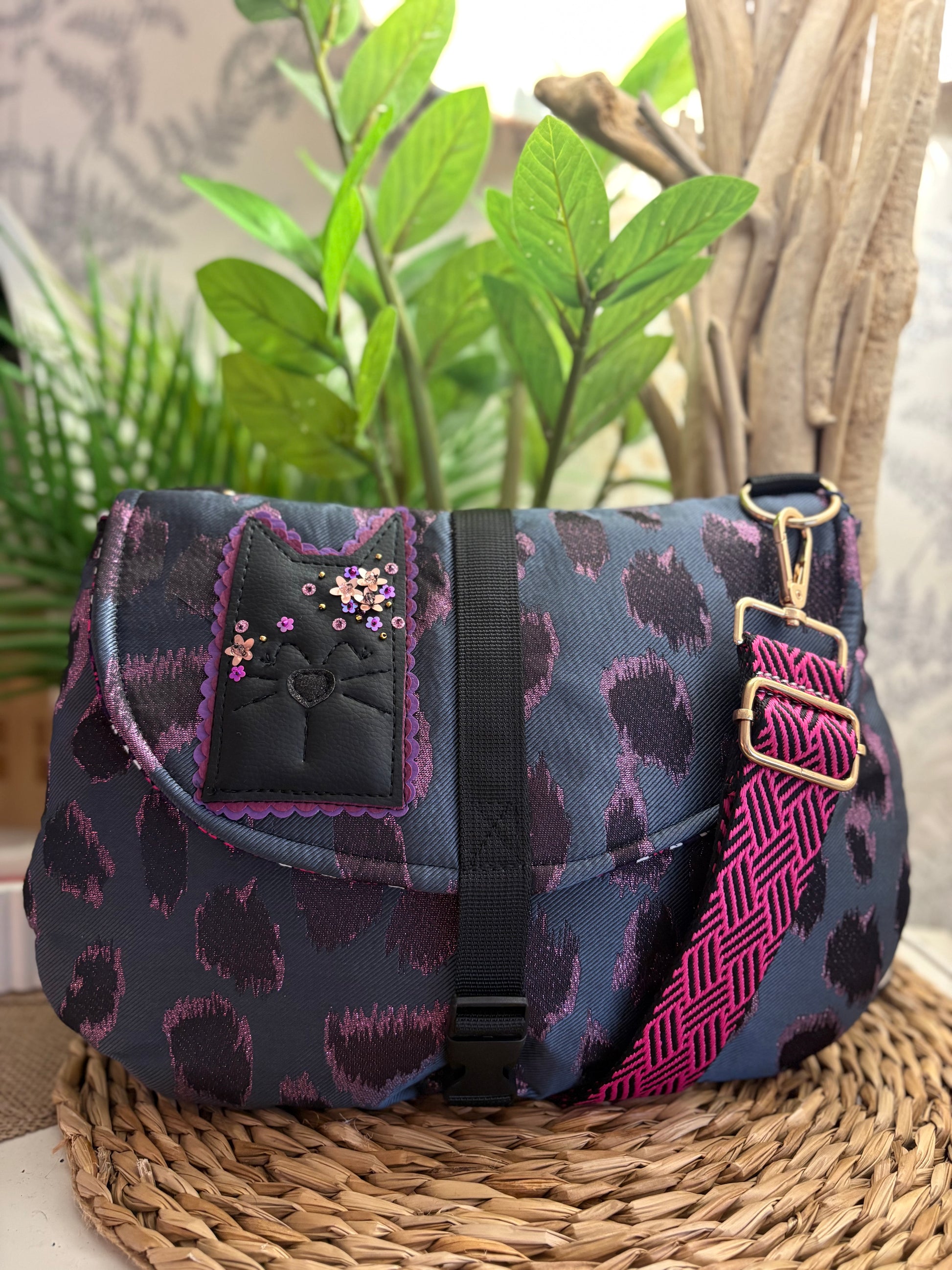 Sac à main clip chat perlé à la main. Trois poches intérieur