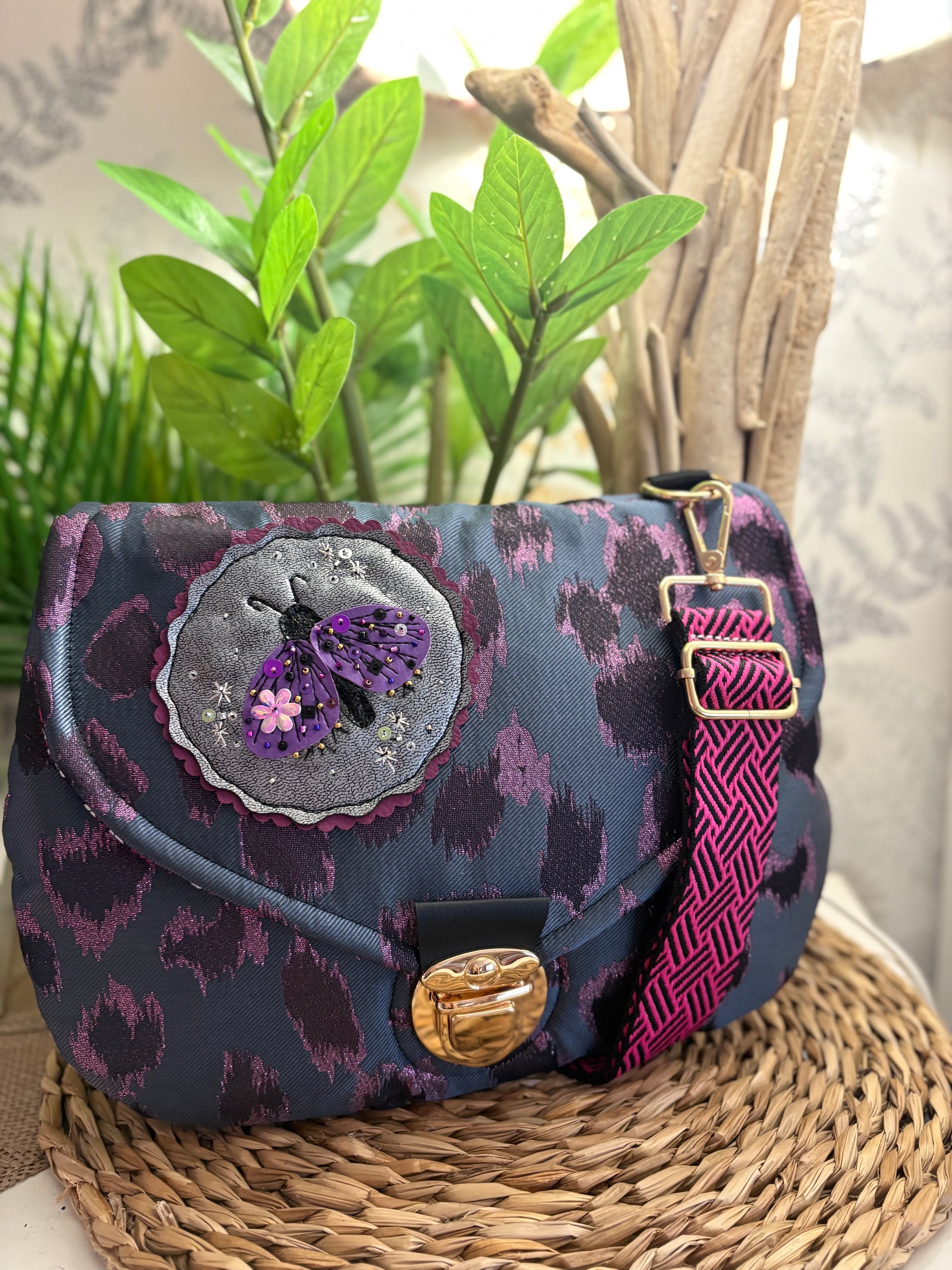 Sac à main papillon de nuit perlé à la main. Trois poches intérieur